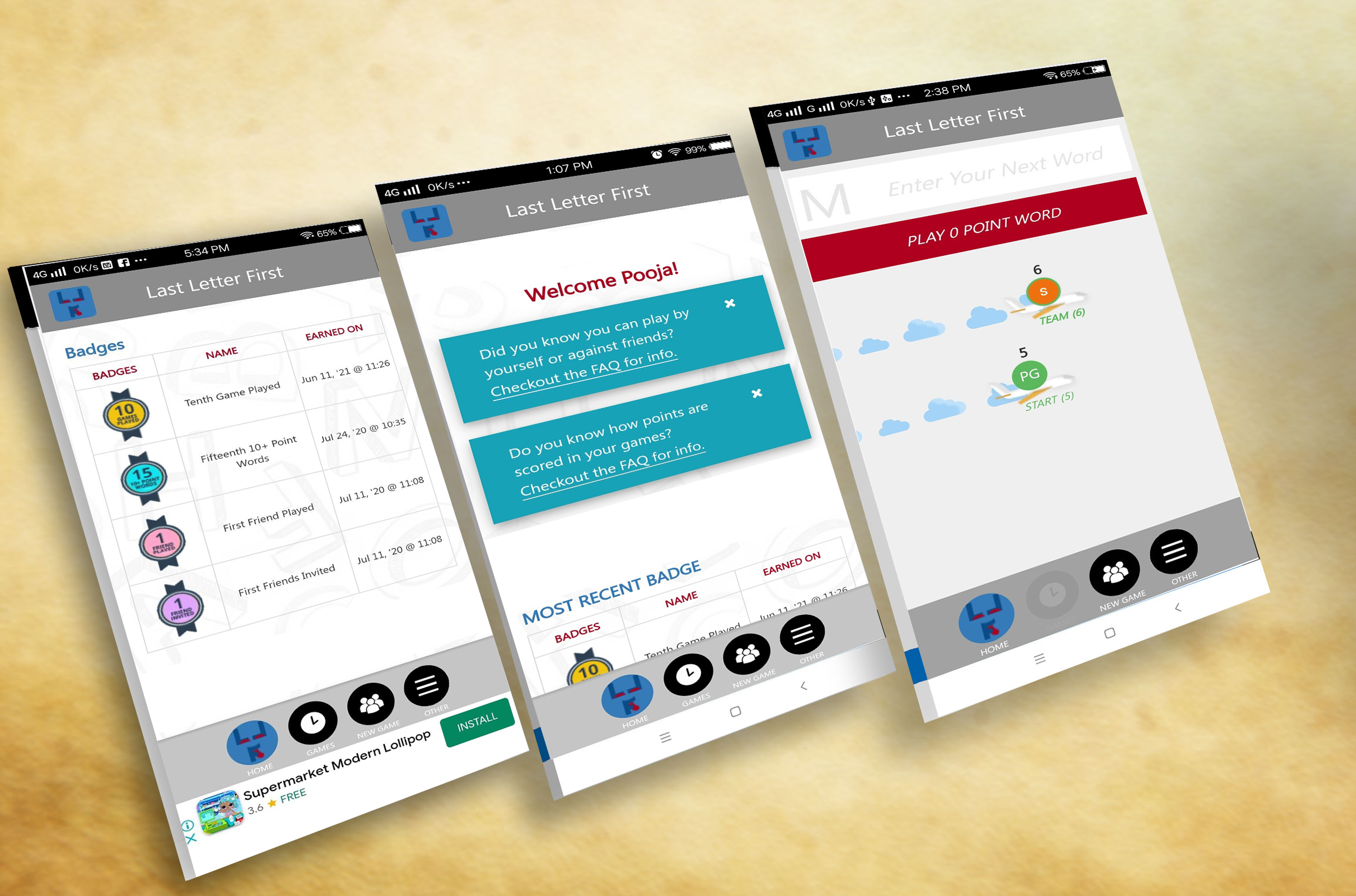 Each player enters a word with the first letter matching the last letter of the word entered by the prior player. Play alone, or play with friends. Your friends can come from email address, Facebook, or Google.